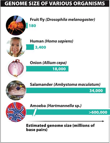 Some plants such as onion (Allium species) possess many times as much DNA as a human.