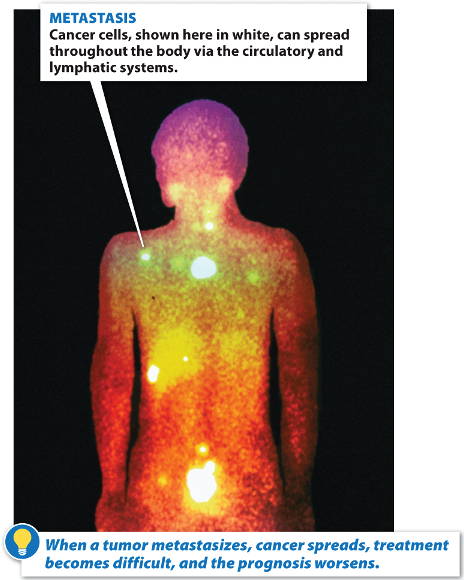 If a tumor continues to grow, it may become malignant and starts to spread to other areas, the result is cancer.