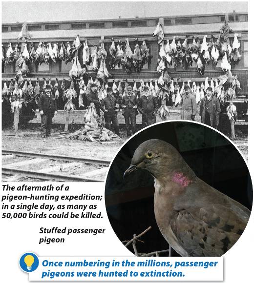 Hunting and other human activity such as loss of habitat due to deforestation led to their extinction (death of every member of the species) by 1914.