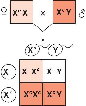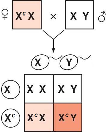 Males possess only 1 X chromosome, and exhibit a recessive X-linked trait (such as color blindness) if he inherits the allele from his mother.