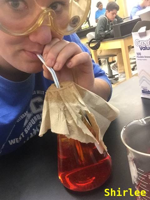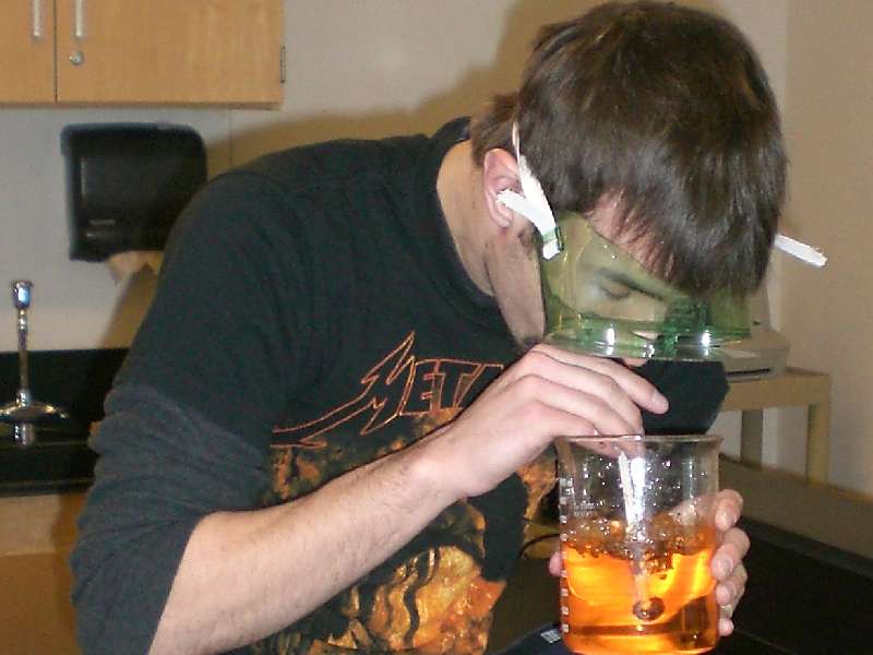 NOTE: wear goggles; exhale only, do not inhale (drink)!