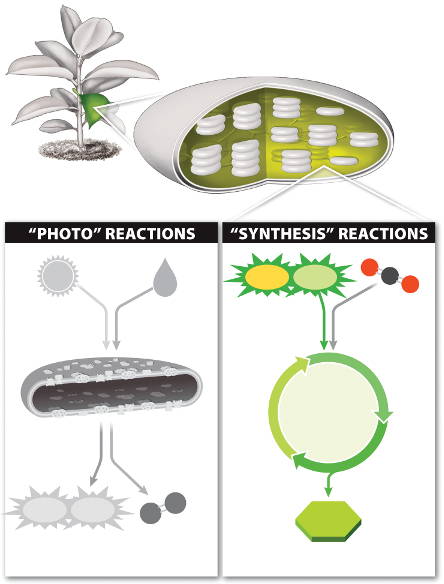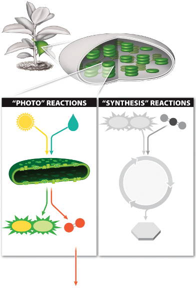 During photosynthesis, which are products of the "photo" reactions that are later used in the "synthesis" reactions?