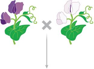 The offspring between a true-breeding purple and a true-breeding white pea plant are